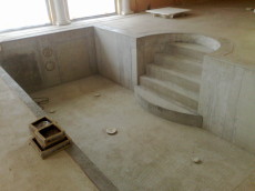 Na železobetónovú vaňu s hladkým povrchom ľubovolného tvaru sa nanášajú izolačné náterové hmoty, ktoré neprepúšťajú vodu (Botament, Schomburg, Murexin). Na takto vyizolované steny sa lepí flexibilným lepidlom keramický obklad. Pri rekonštrukcii starších bazénov sa prevedie ošetrenie vnútorných stien. Filtračnú jednotku je možné umiestniť v technologickej šachte priamo pri bazéne, alebo ak možnosti nedovoľujú, v pivnici, garáži…