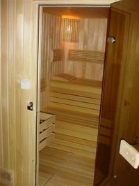 Fínska sauna tzv. suchá má teplotu od 90 až do 110 °C a minimálnu vlhkosť. Na obloženie stien sa používa len kvalitný a správne vysušený drevený obklad. Na interiér, čiže lavice a vnútorné vybavenie sa zvyčajne používa drevo africkej vŕby abachi, ktoré je ľahké, porézne a trvácne. Má nízku hustotu a tepelnú vodivosť, vďaka čomu ani v rozpálenej saune na dotyk nepáli. Ľahko sa udržuje čisté a prakticky vôbec nestarne. Všetky dreviny použité v saune sú prírodné a nesmú sa chemicky upravovať. Na ochranu lavíc a vnútorného vybavenia sa môže použiť parafínový olej.